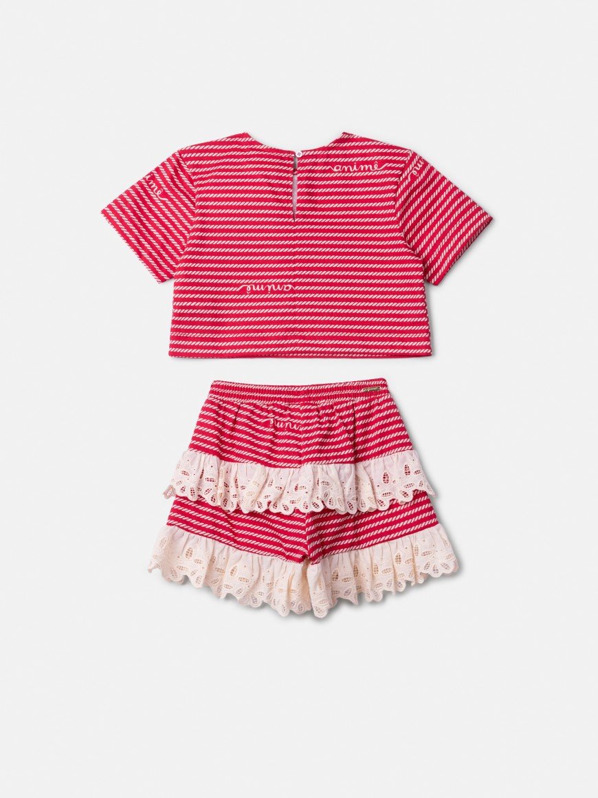 Conjunto Animê Listrado Vermelho Com Shorts Laise