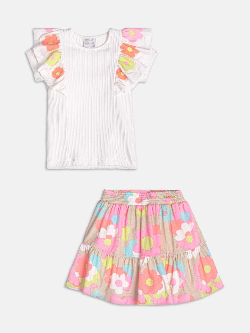 Conjunto Momi Blusa Canelada Com Saia Estampada