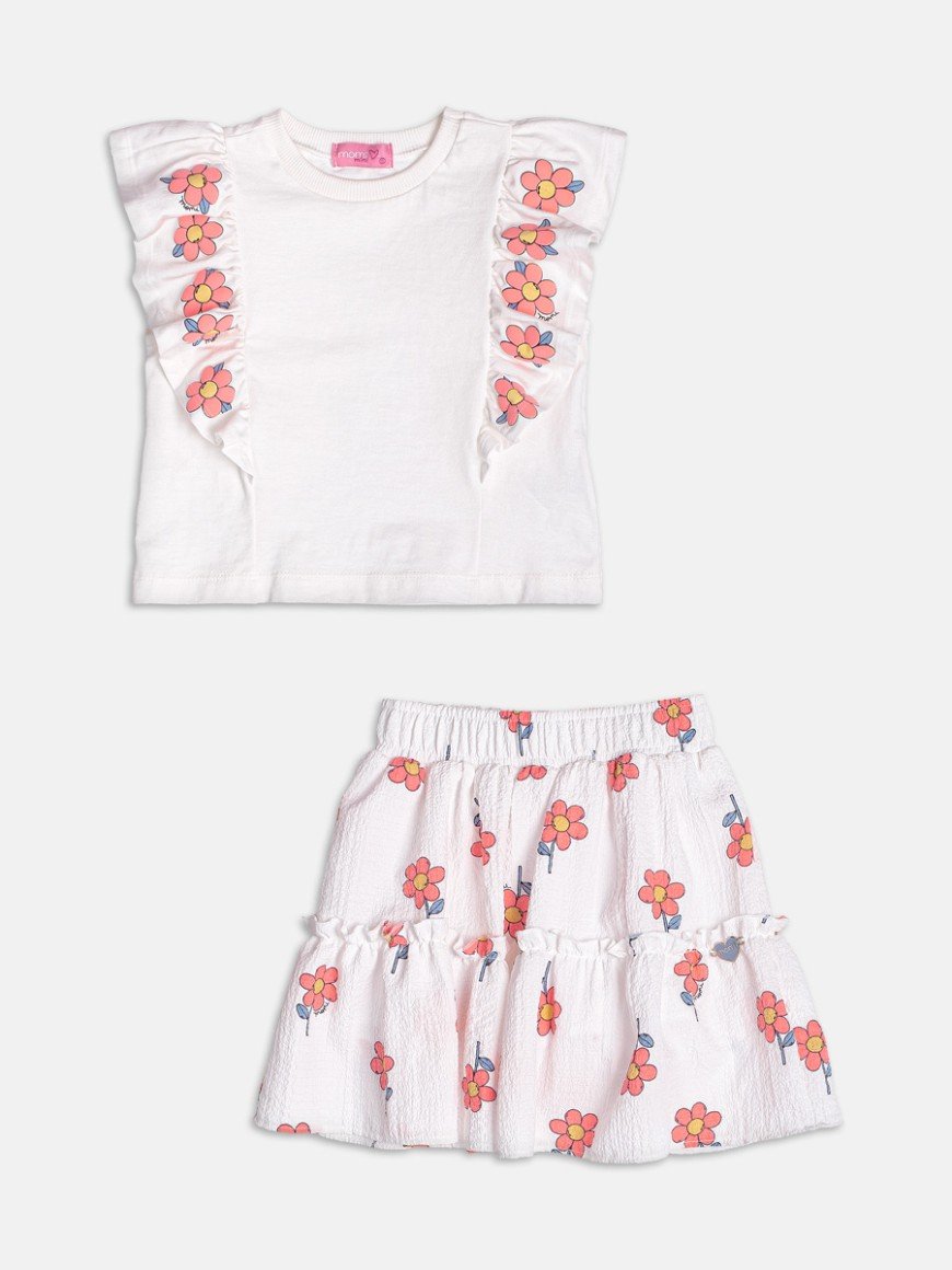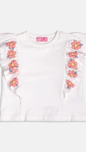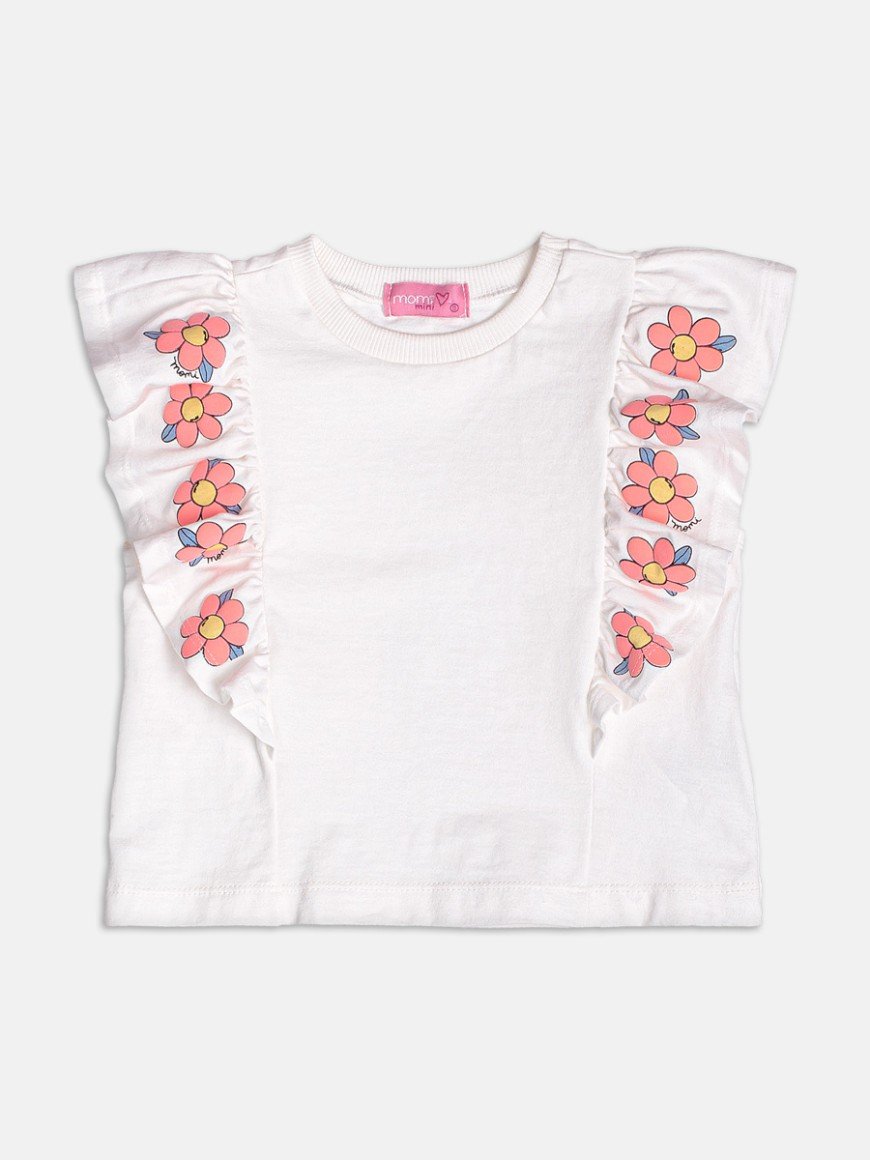 Esse conjunto da Momi é composto por uma blusa super confortável confeccionada em malha macia, com babados e aplicação floral que trazem um toque romântico e alegre.