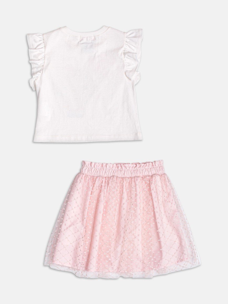 Composição: Blusa 100% algodão / Saia em poliéster com tule sobreposto