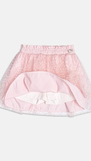 Detalhes: Estampa da Hello Kitty com aplicação delicada + saia com tule poá