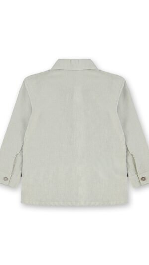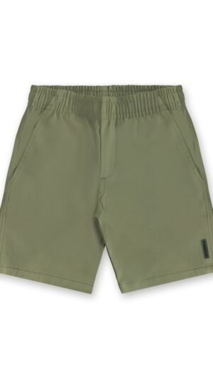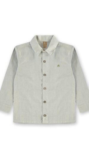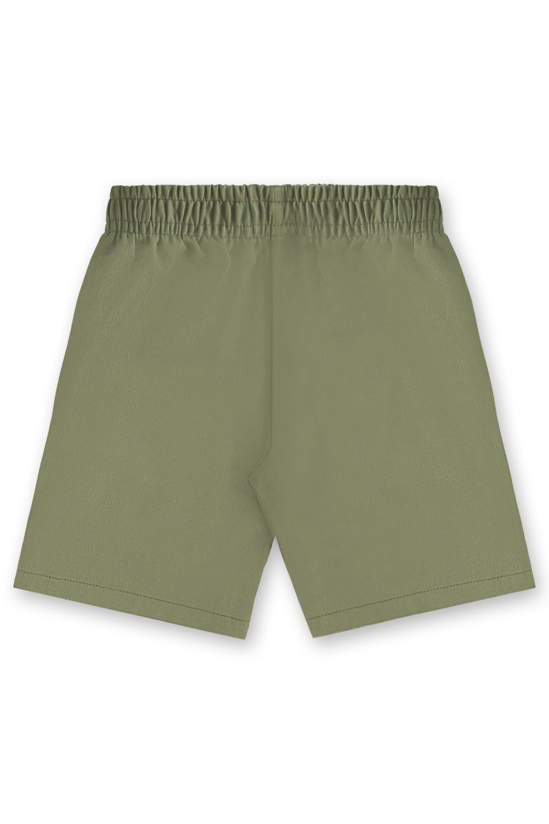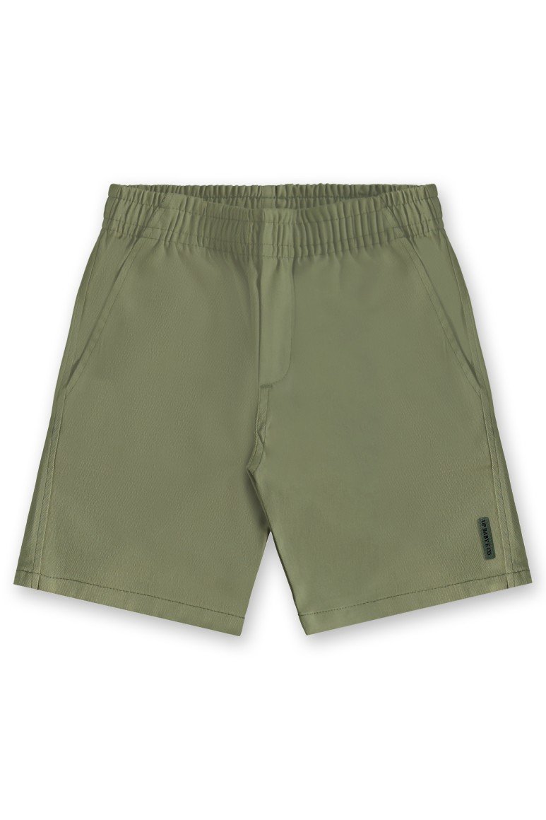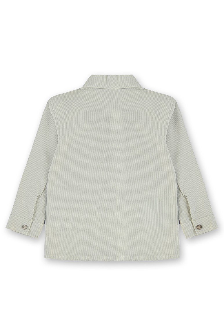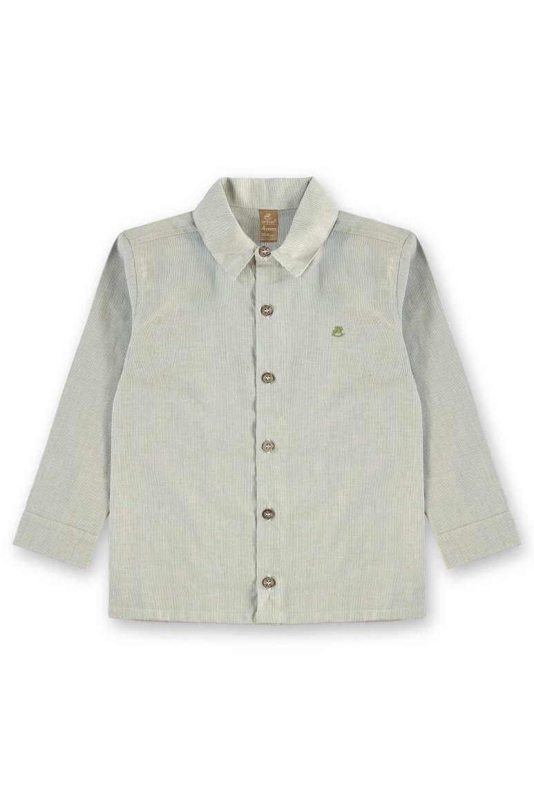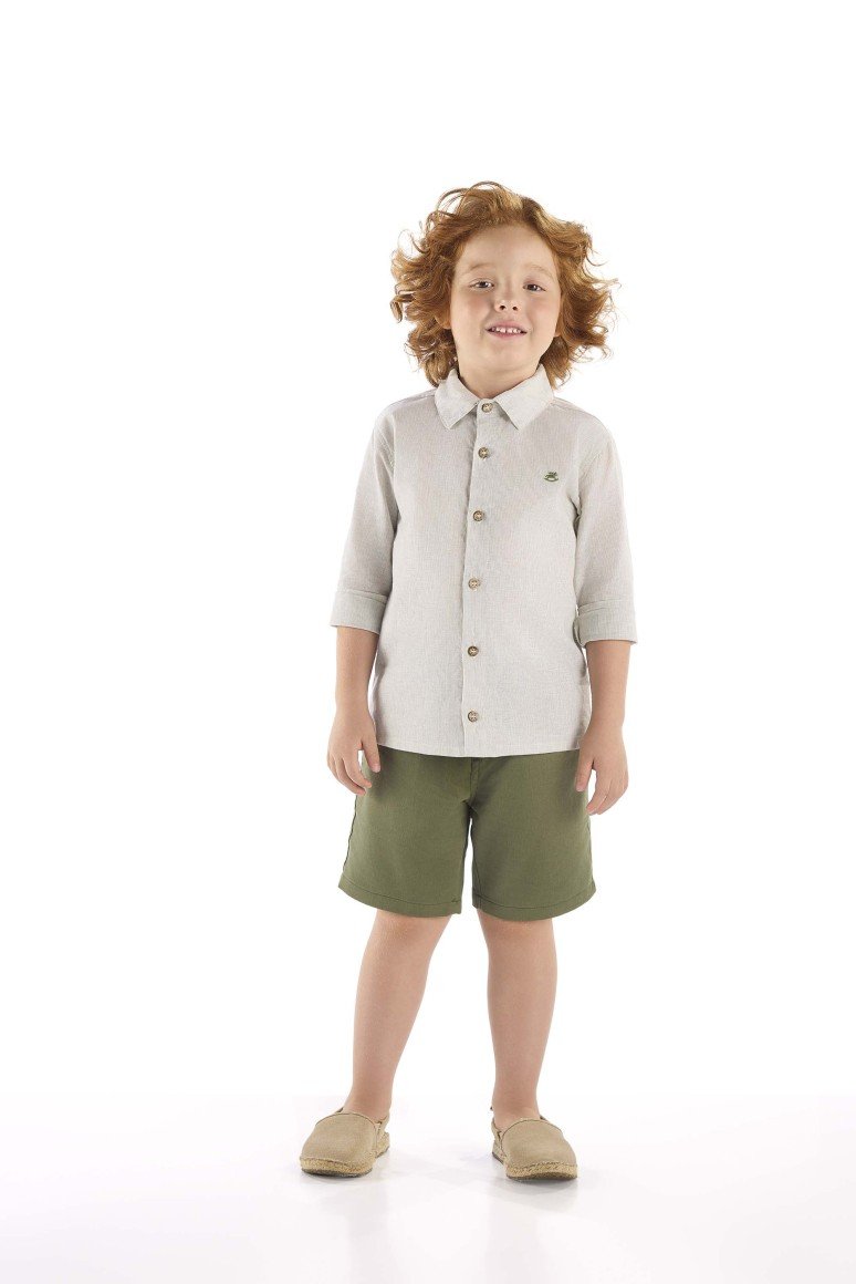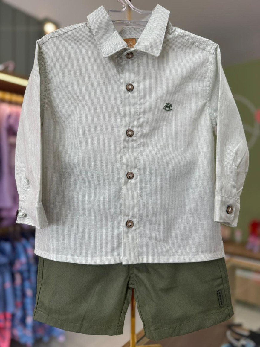 Conjunto Up Baby menino composto por camisa de botão em tecido leve com listras finas e short verde em sarja macia.