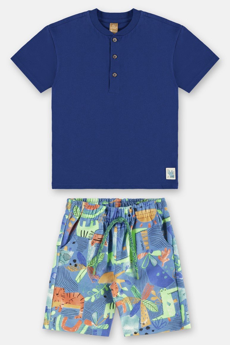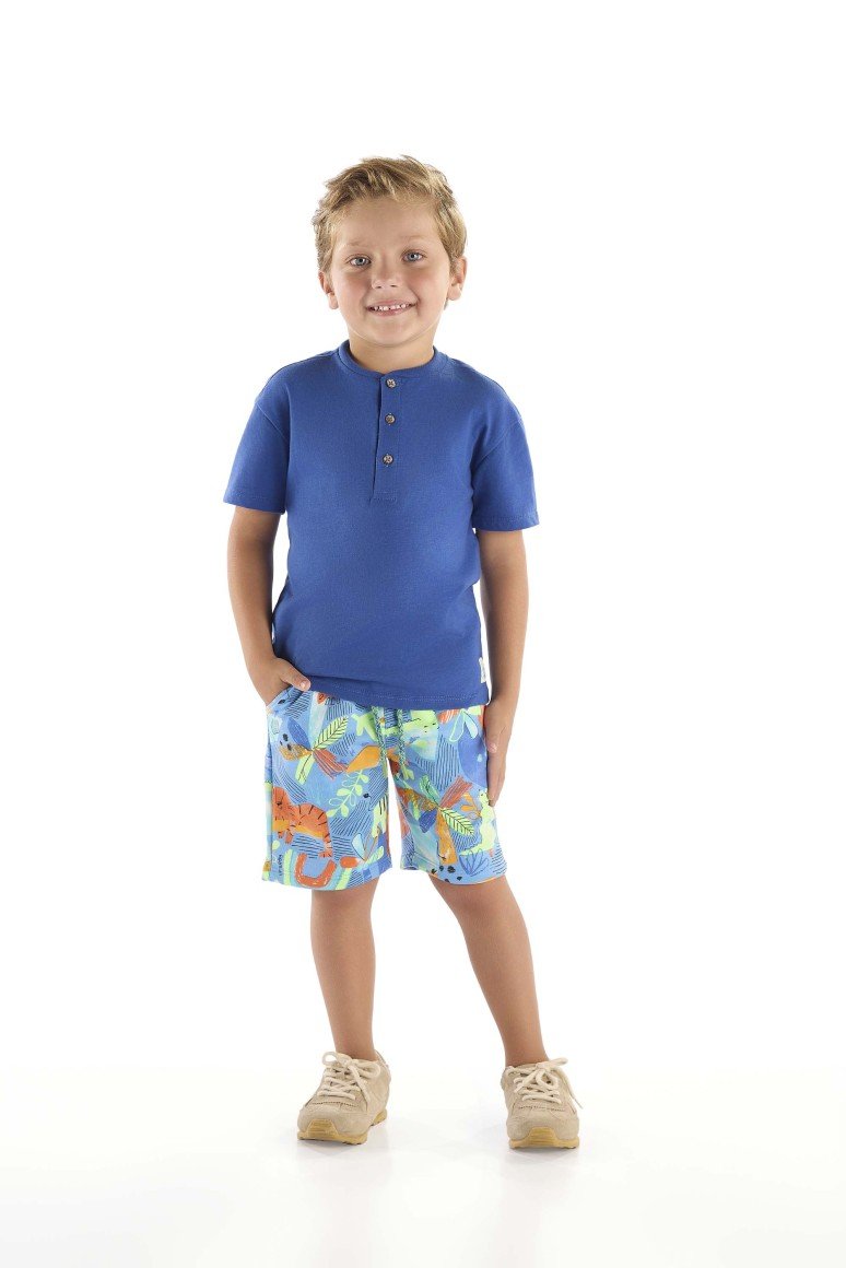 Voltar p/ homeConjunto confortável e cheio de estilo com camiseta básica de botões e bermuda em moletom sem felpa estampada.