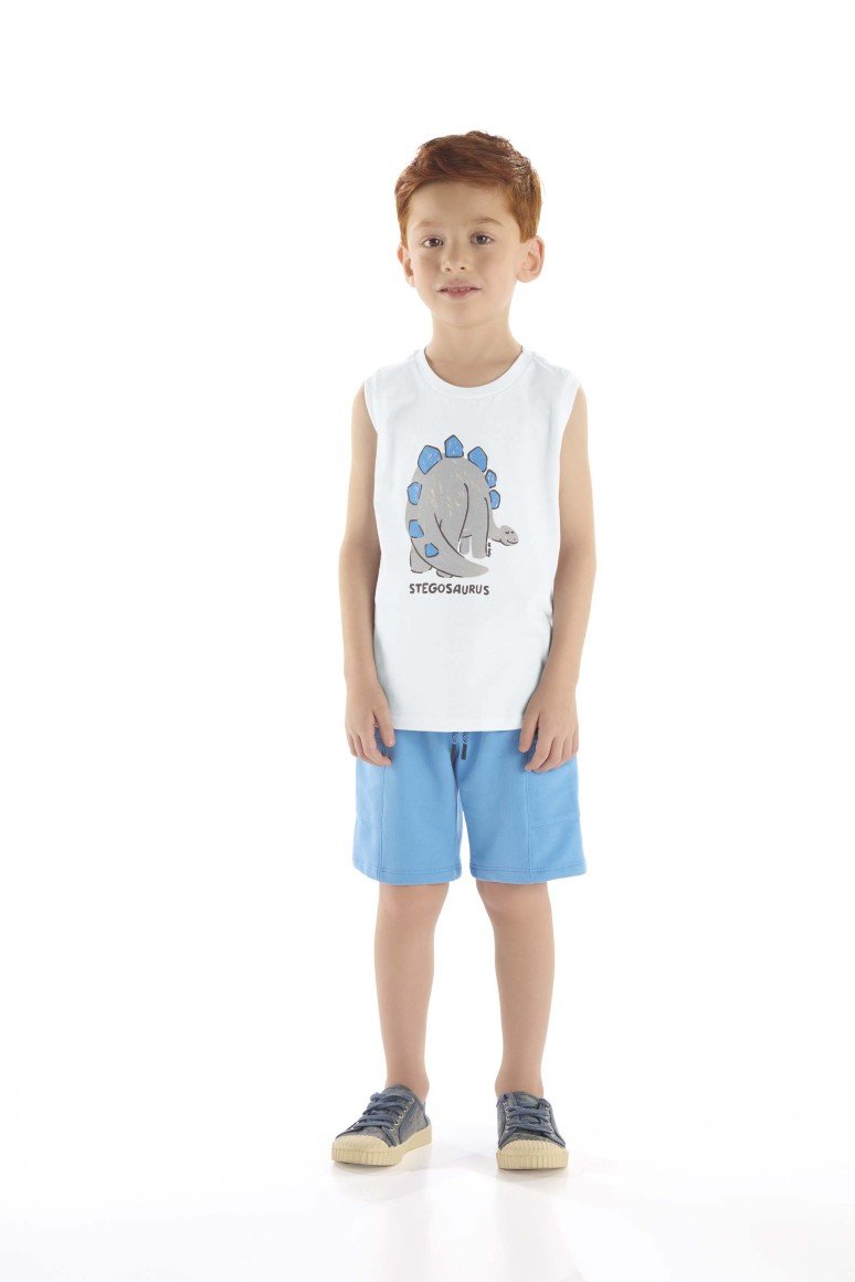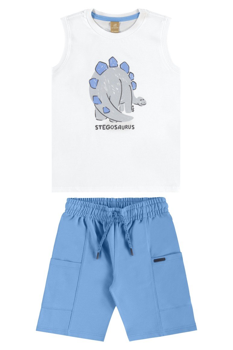 Voltar p/ homeConjunto super leve e confortável com regata estampada de dinossauro e bermuda em moletom sem felpa.