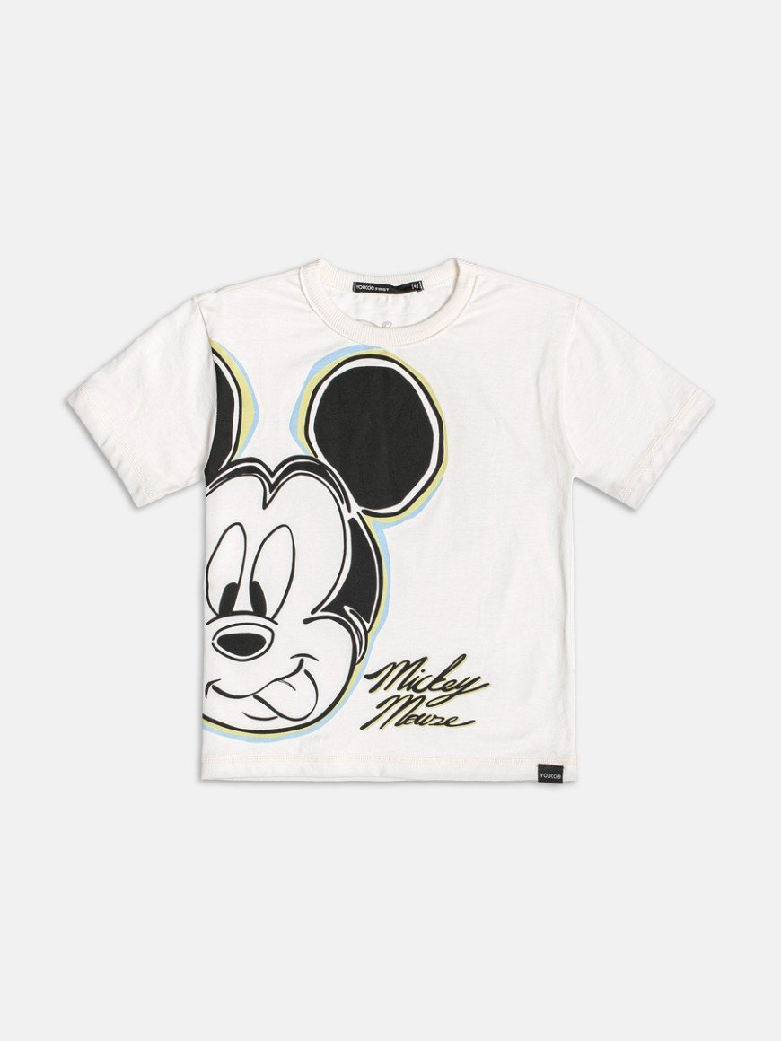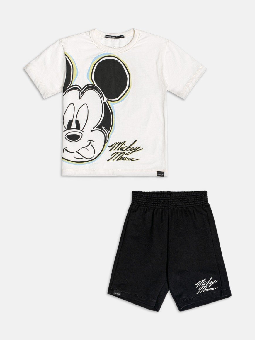 Conjunto Youccie Camiseta Mickey Branca Bermuda Moletinho