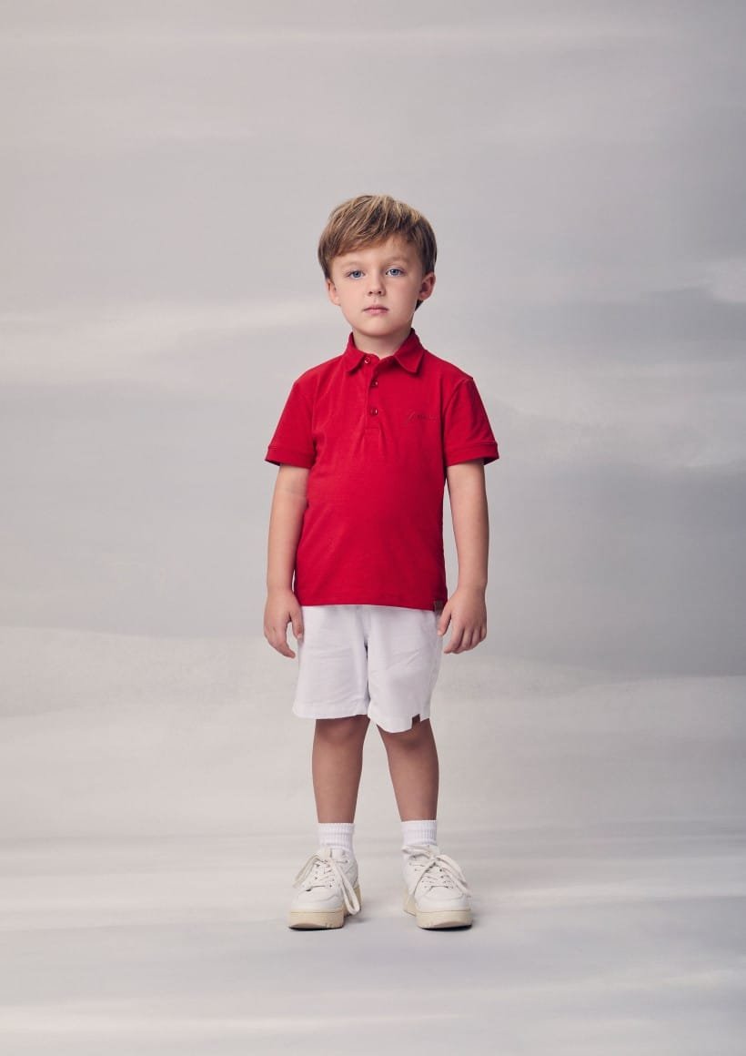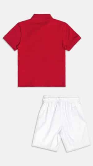 Conjunto Youccie Polo Vermelha Com Bermuda Sarja Branca