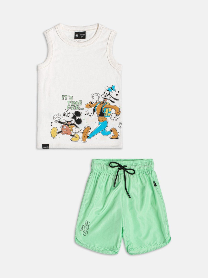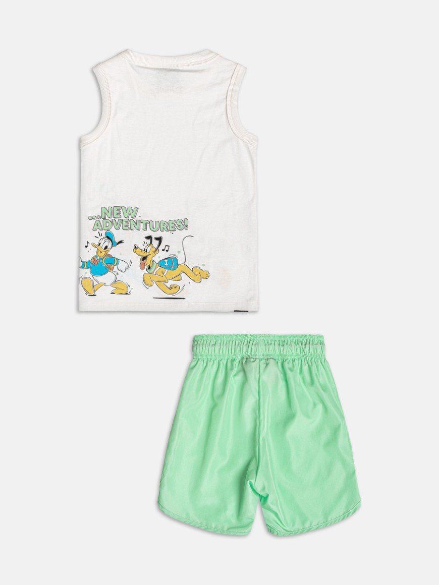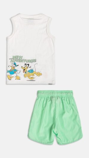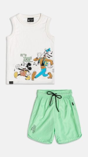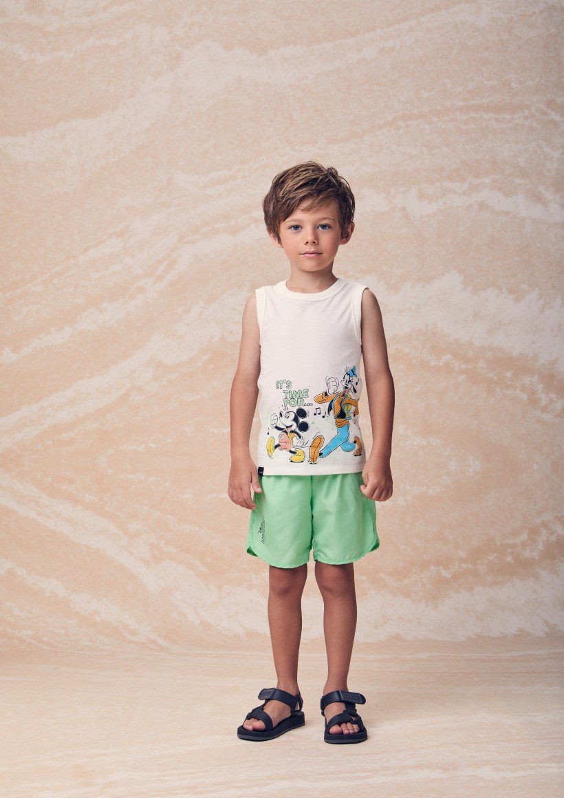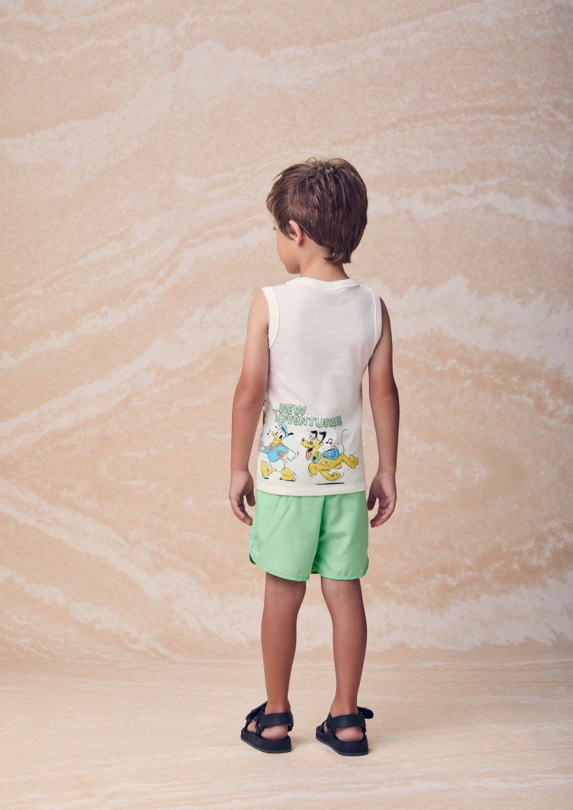 Perfeito para acompanhar os pequenos nas aventuras do dia a dia, ele traz uma regata com estampa licenciada Disney, cheia de personalidade e os personagens mais amados Mickey, Pateta, Pluto e Donald, inspirando momentos de brincadeira e imaginação.