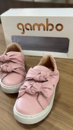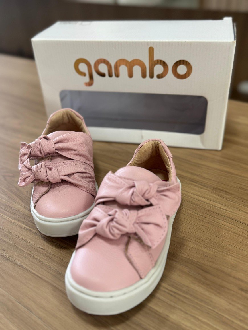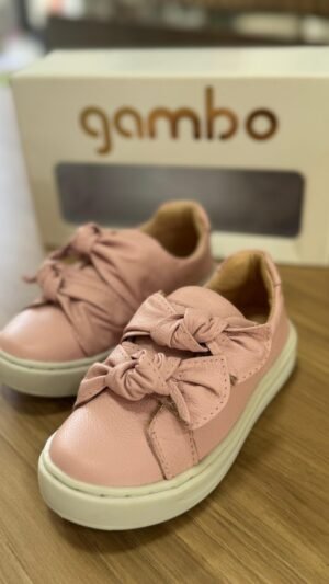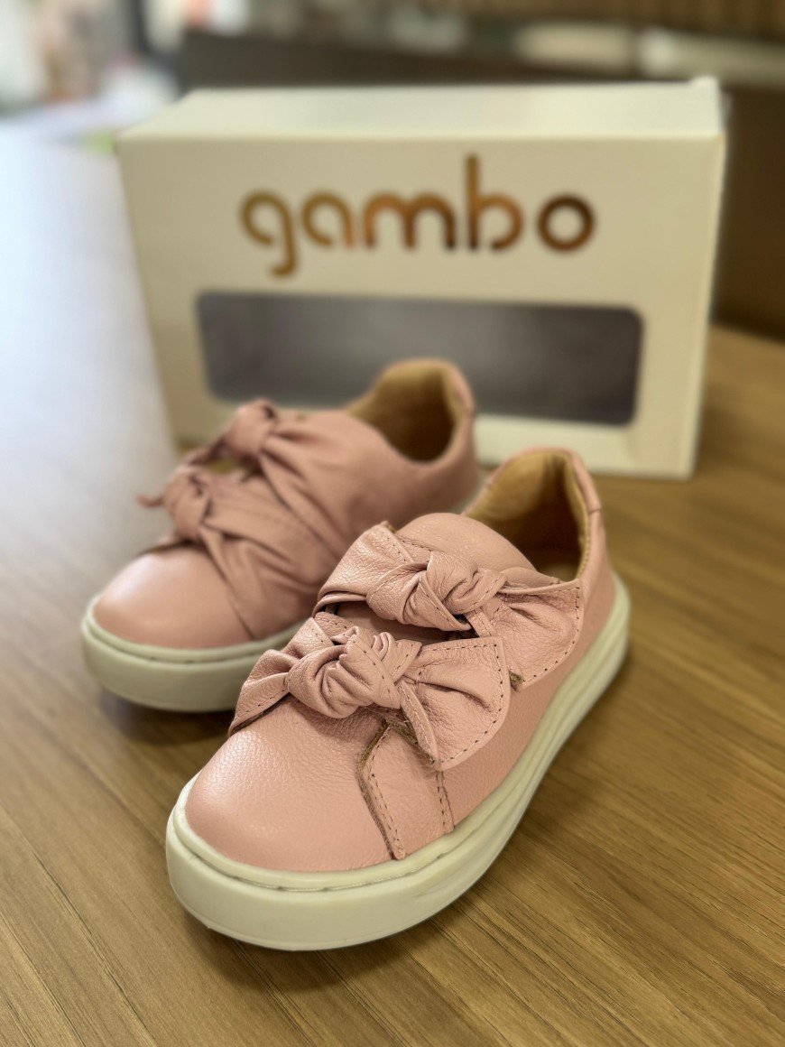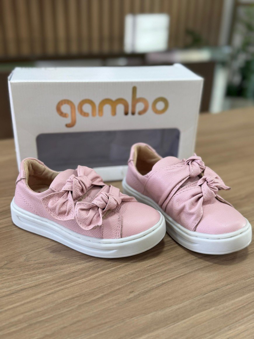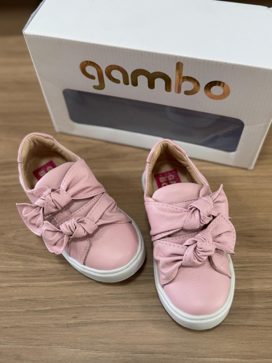 Tenis Menina Em Couro Gambo Com Ajuste Rosa