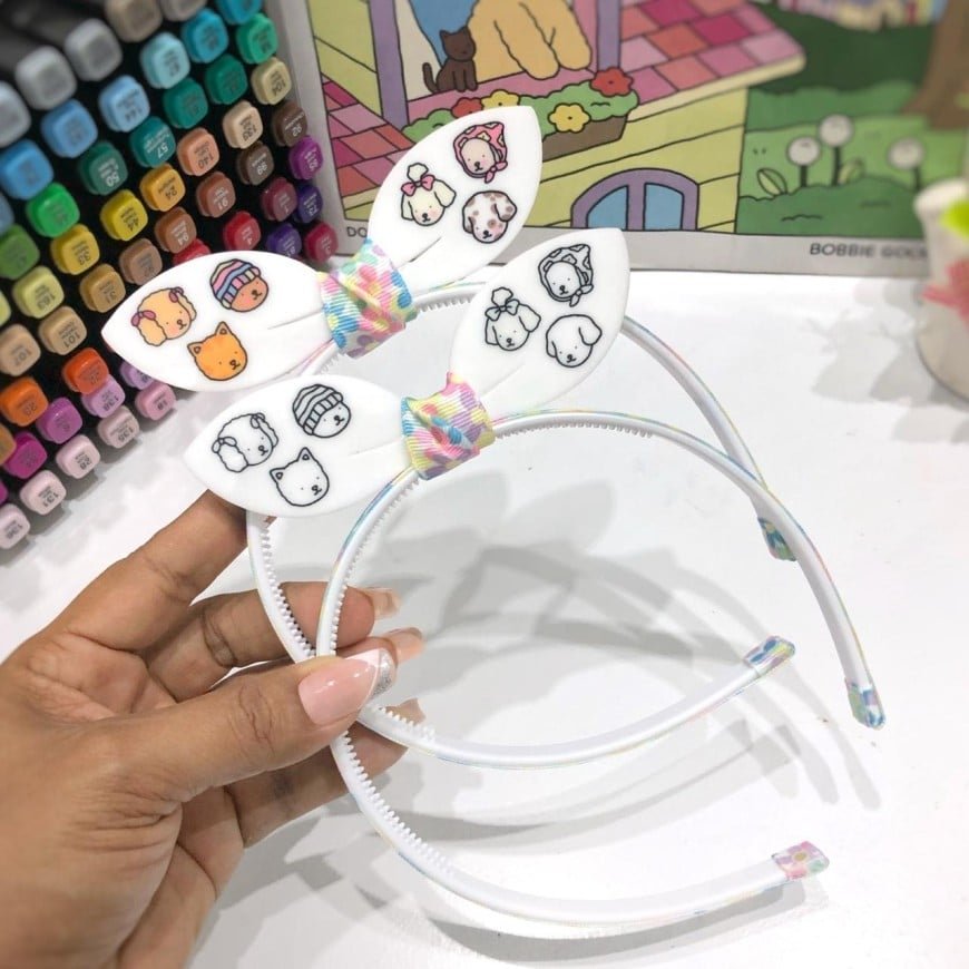 A tiara infantil com estampa personalizada Bob Goods é feita com material leve e confortável, perfeita para acompanhar as crianças no dia a dia ou em ocasiões especiais.