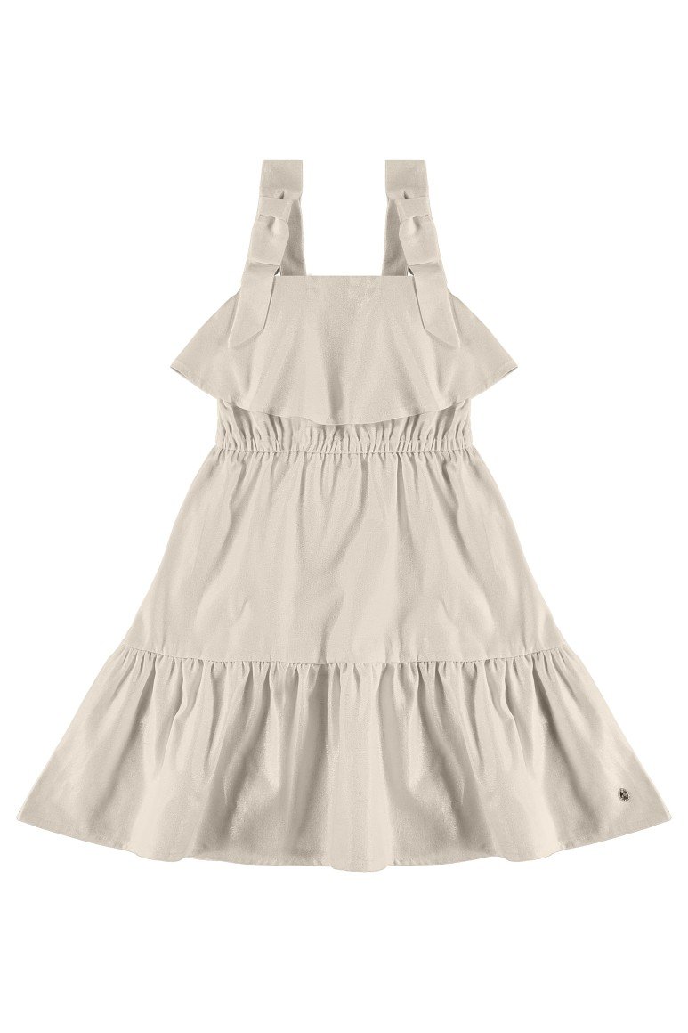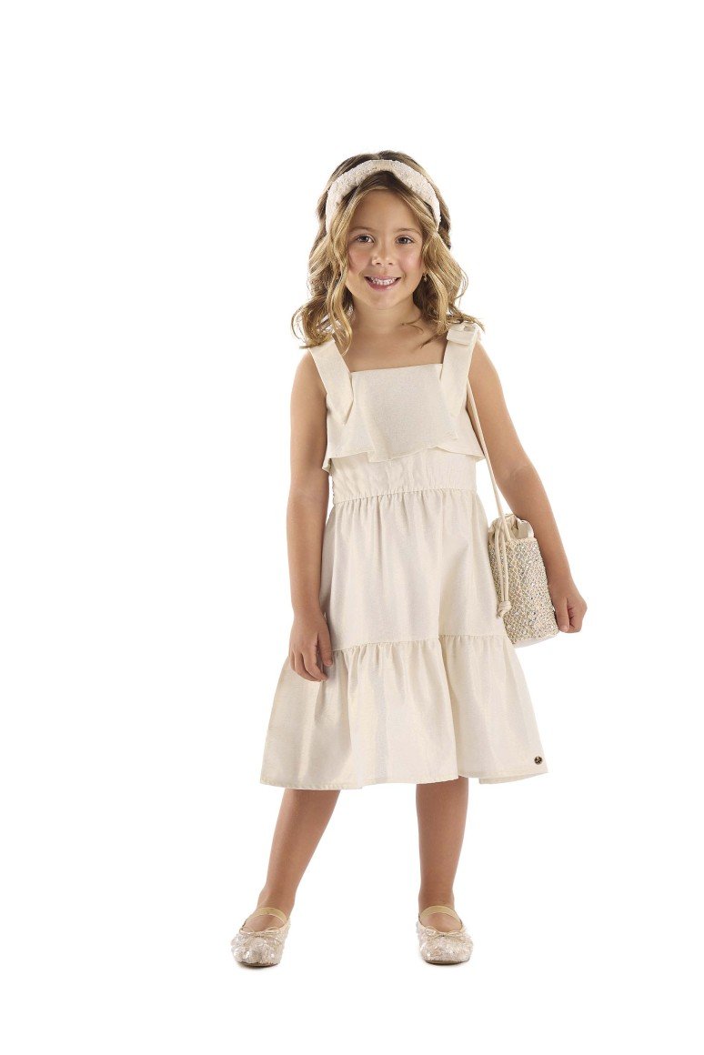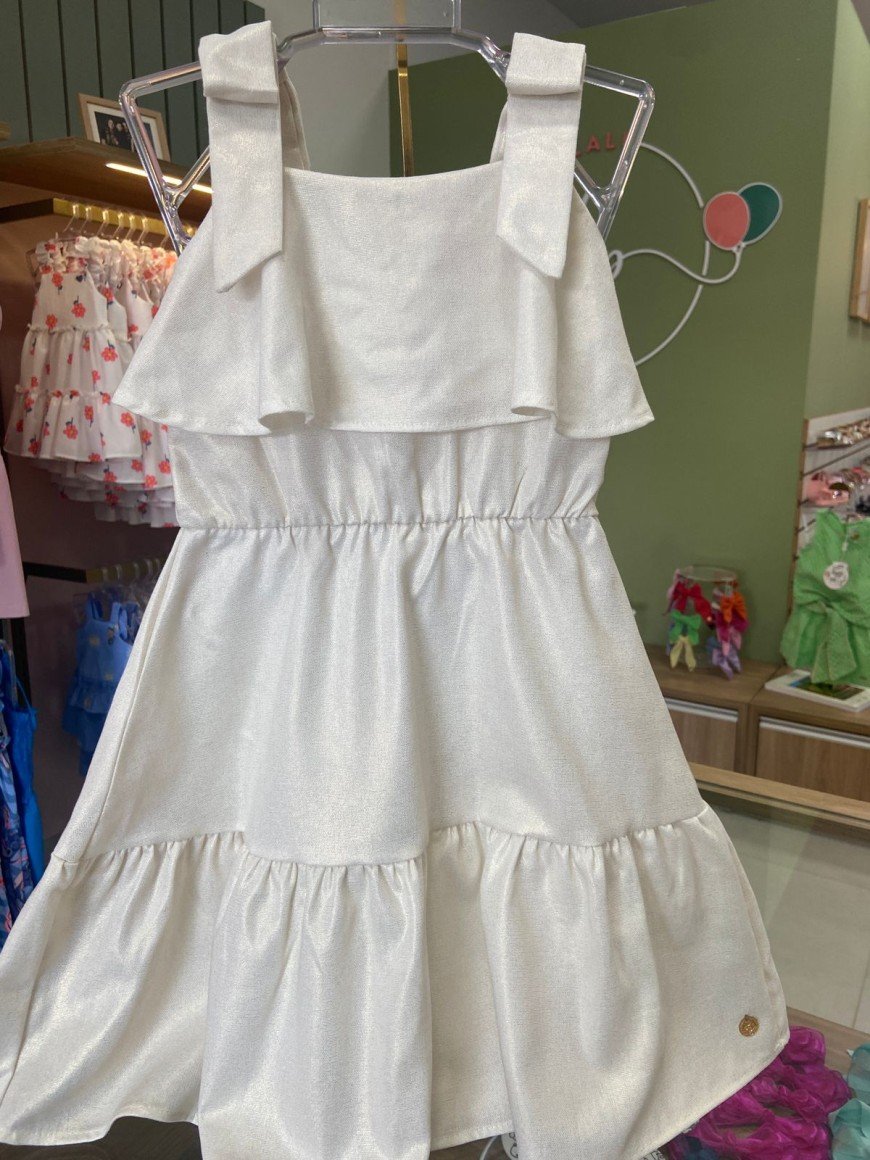 Vestido UP Baby encantador em tom off white com leve brilho, perfeito para ocasiões especiais.