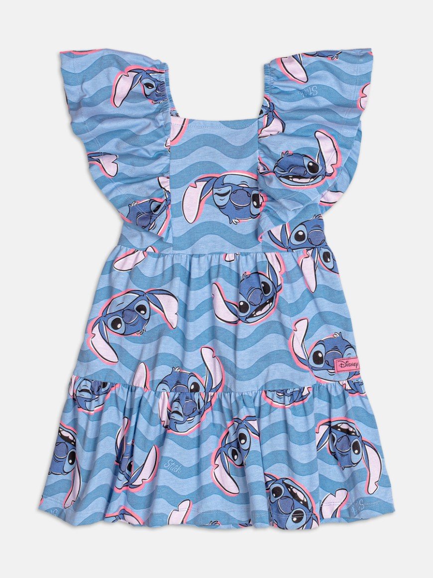 Feito em malha leve e macia, traz o carisma do Stitch em uma modelagem soltinha com babados e mangas amplas, perfeita para acompanhar o ritmo das pequenas com conforto e estilo. Um look cheio de alegria e personalidade!